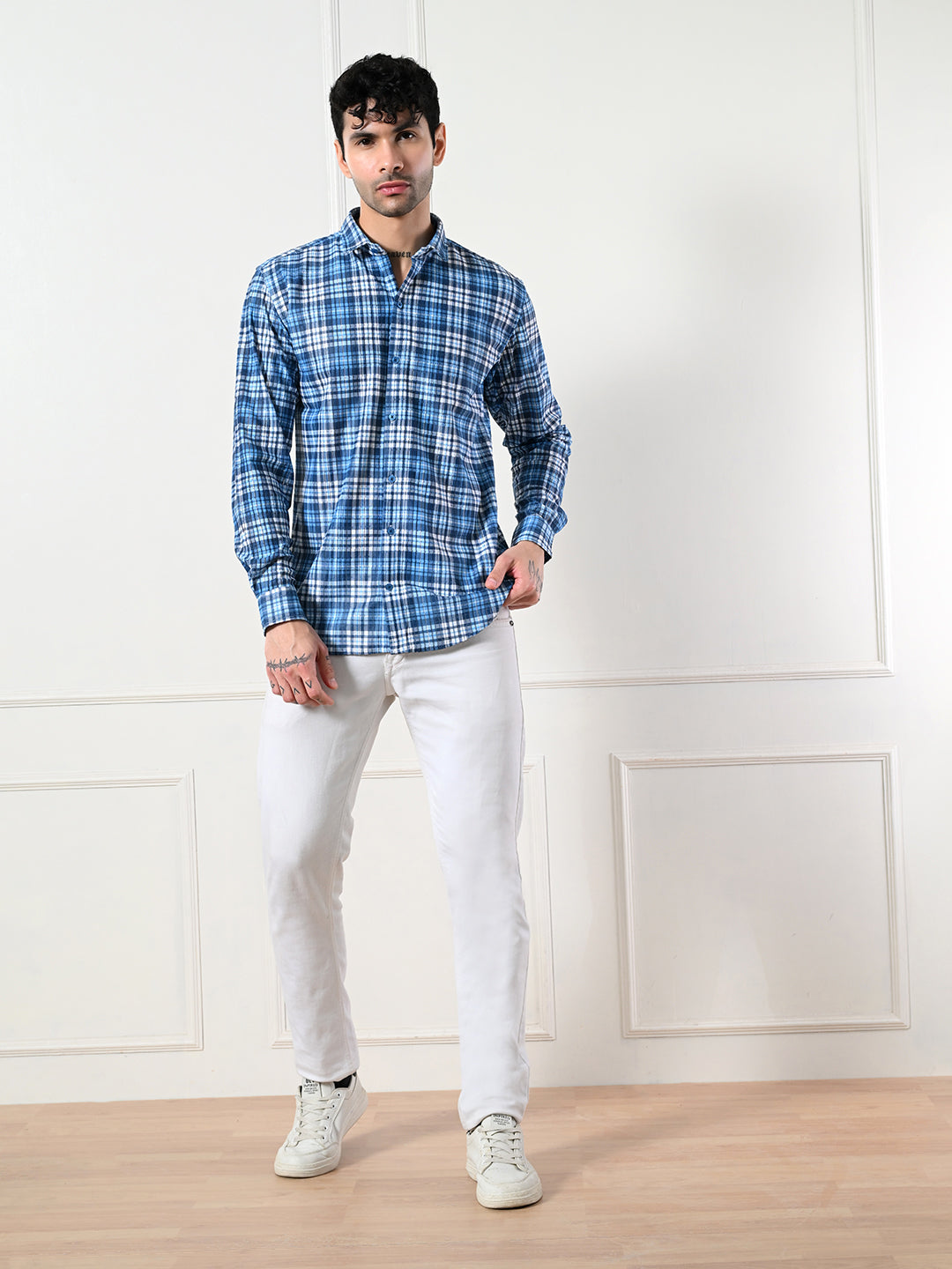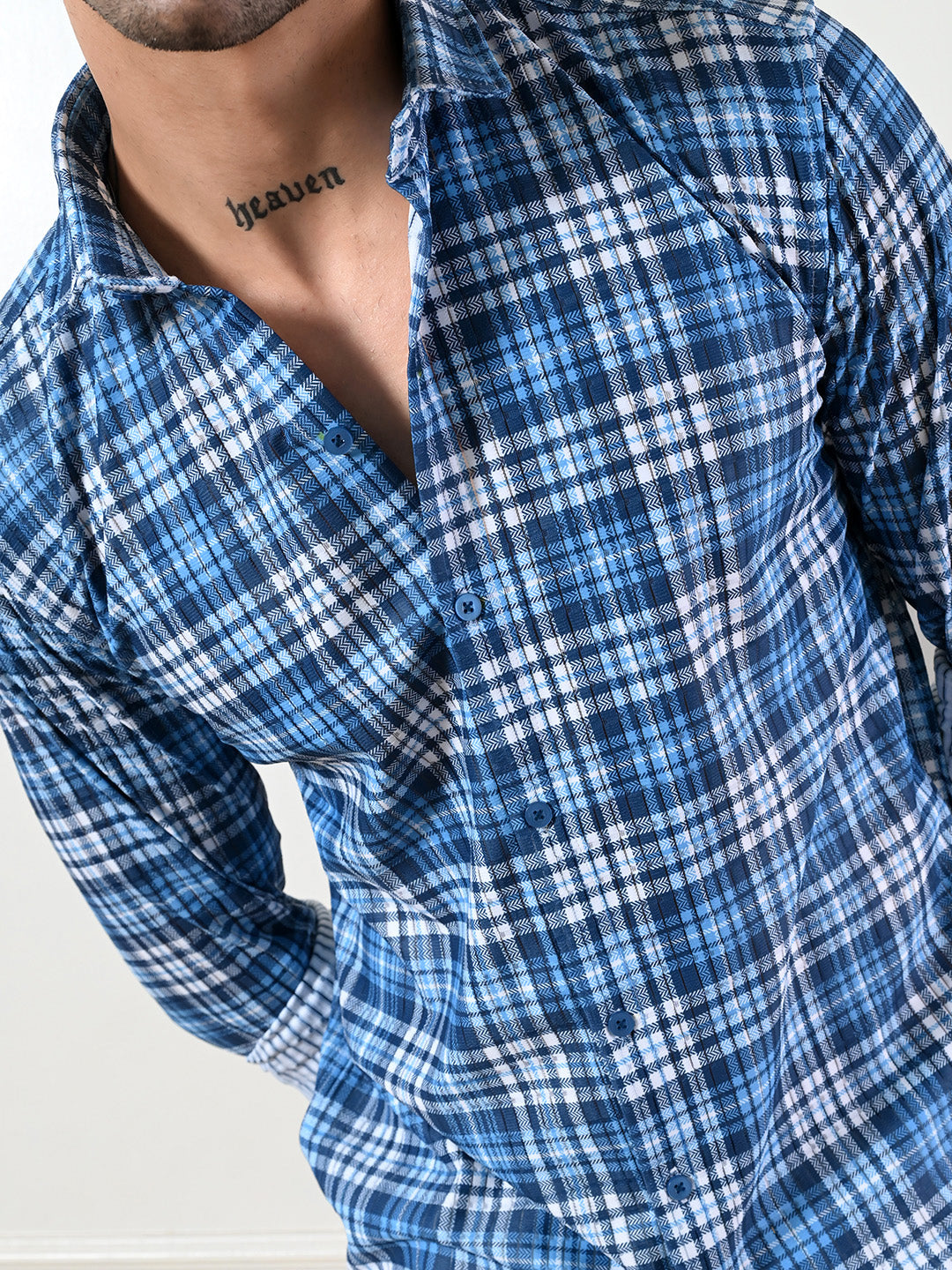 Elevate your everyday style with this men’s blue checkered shirt, a perfect blend of comfort and classic design. Featuring a vibrant mix of blue, white, and navy hues in a bold plaid pattern, this shirt is tailored for versatility—ideal for casual outings, weekend meetups, or smart-casual workdays.